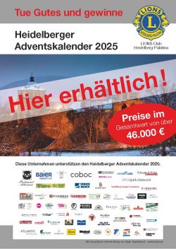 Der LIONS Club Heidelberg-Palatina unterstützt mit den Erlösen aus dem Verkauf des Heidelberger Adventskalenders regionale, nationale und internationale Hilfsprojekte.